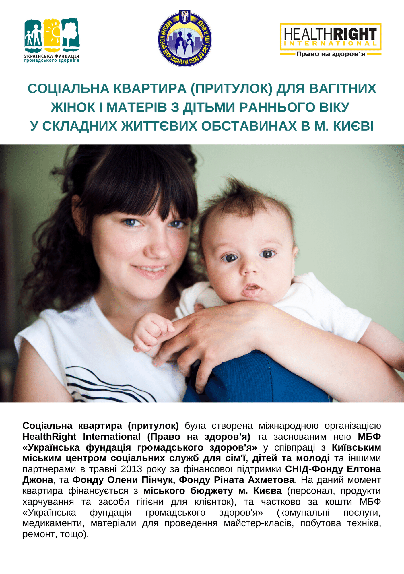 Буклет про Соціальну квартиру (притулок) для вагітних жінок і матерів з дітьми раннього віку e складних життєвих обставинах в м. Києві